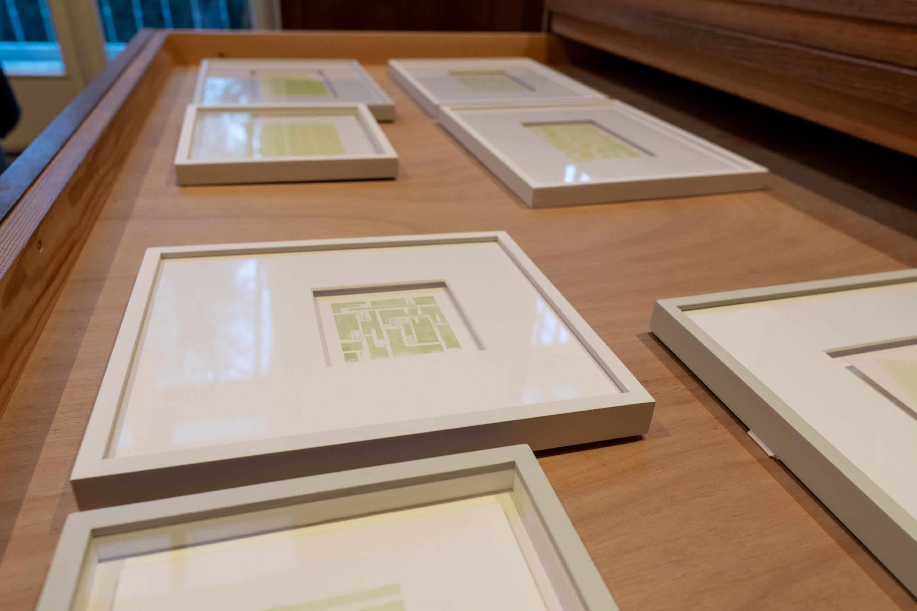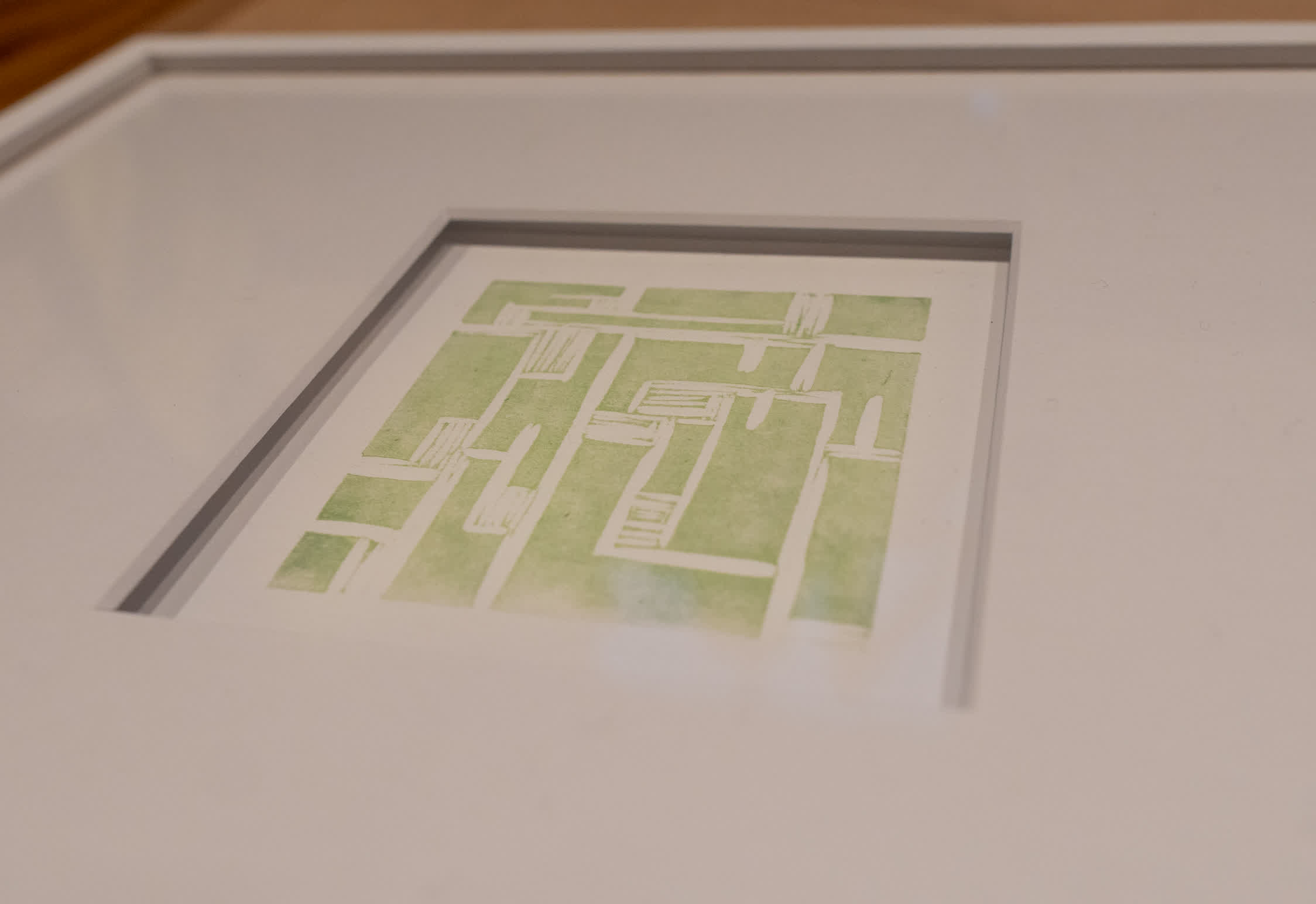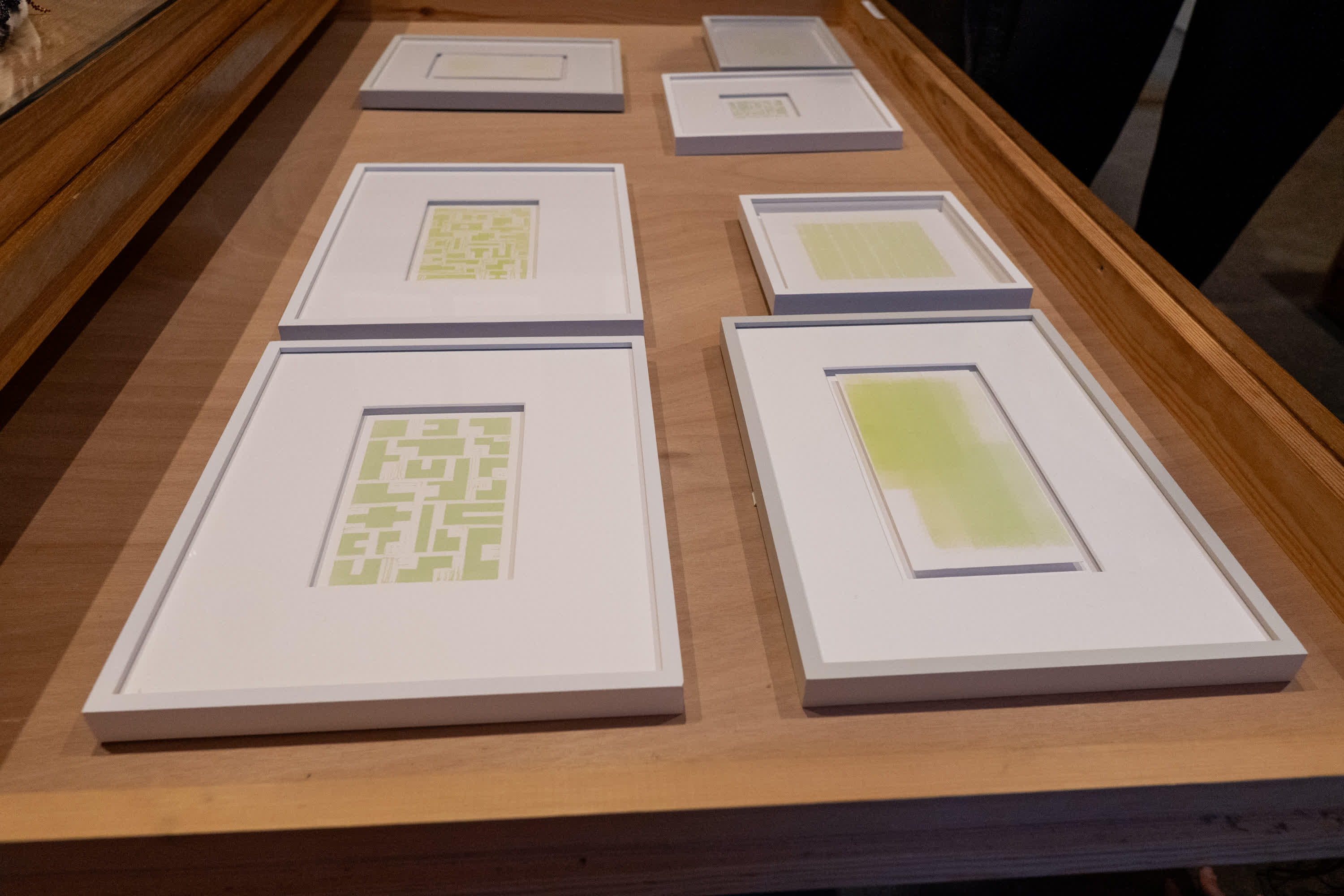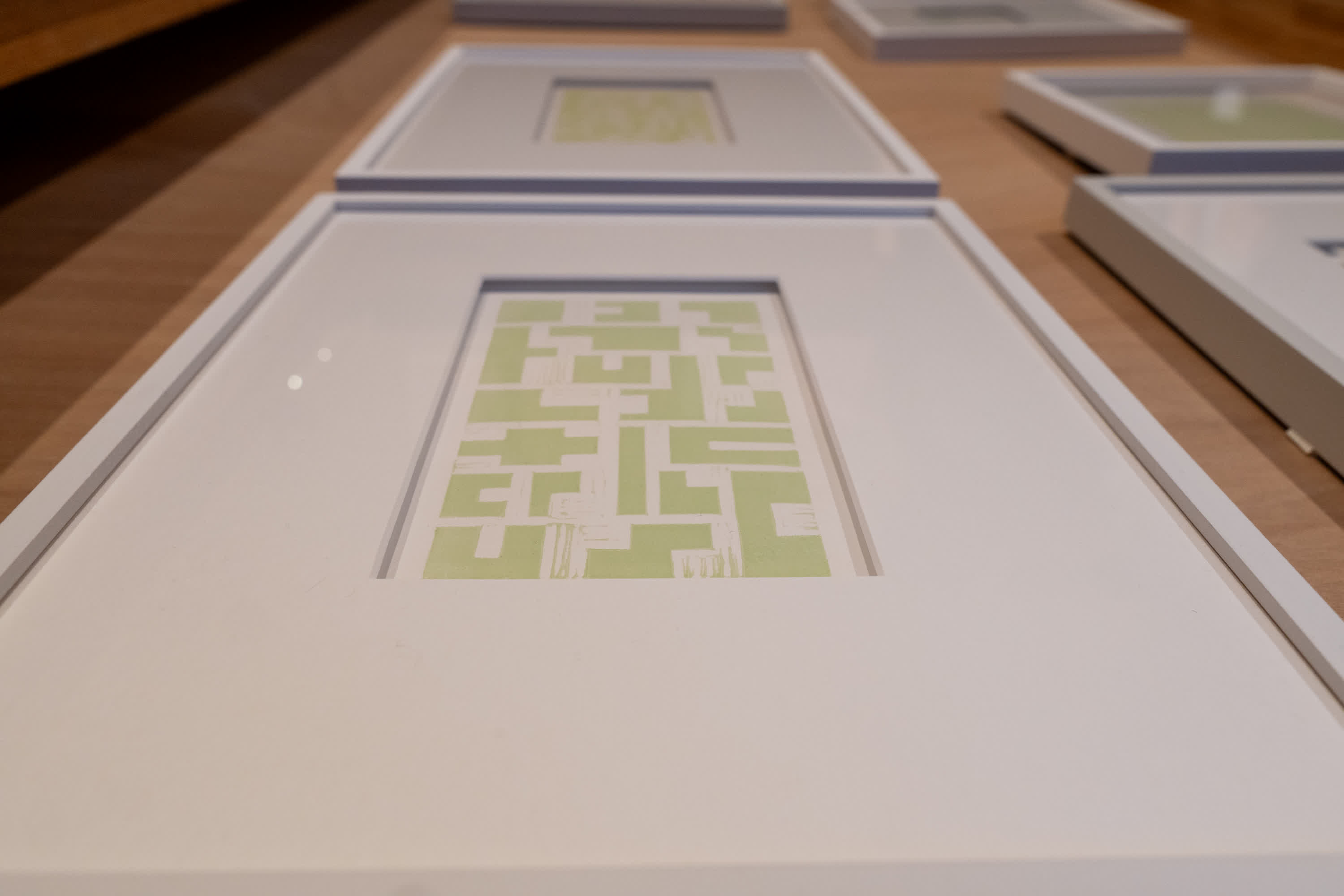 A selection of lino prints displayed in the Ladekastproject / Chest of Drawers project at Phoebus Gallery, Rotterdam.