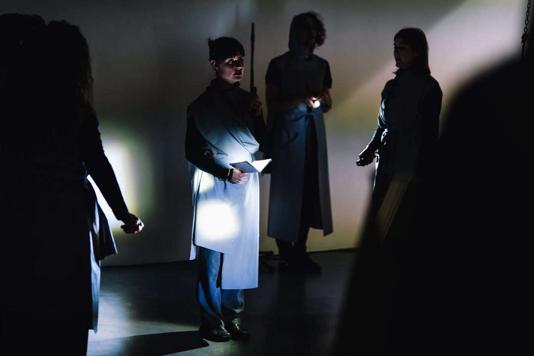 A Kind of Light was a sonic response to Jabu Arnell’s "Turn off the Lights, Disco Ball #13: A Kind of Black". Properties of light were used to activate bodies and voices as they relate to liminal spaces in the city. In line with Jabu's creative process, the performance evolved experimentally, in an interplay between the space, language and sound.